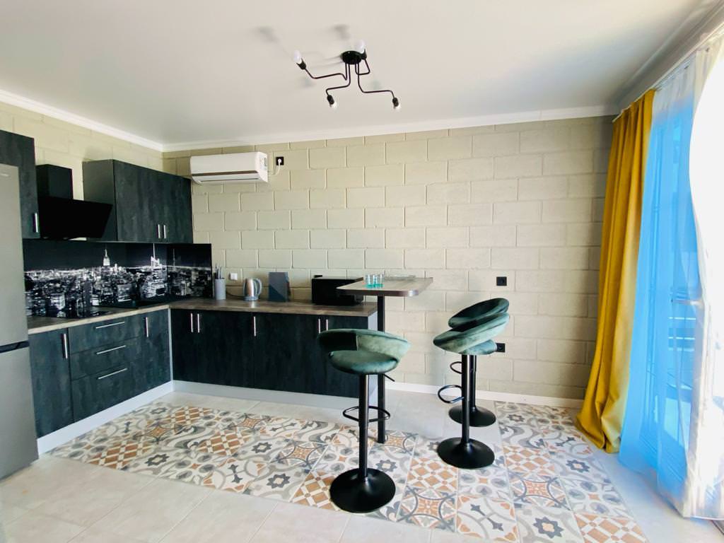 Апартаменты с одной спальней, гостиной и видом на море. Максимальное размещение 4 человека. В номере: двуспальная кровать в спальне и диван-кровать в гостиной, телевизор и кондиционер в каждой комнате. Также номер оборудован кухней с варочной панелью, вместительным холодильником, стиральной и посудомоечной машинами, а также полным комплектом кухонной посуды необходимой для приготовления пищи. Две обеденные зоны, на балконе с видом на море и в уютной обстановке в гостиной.