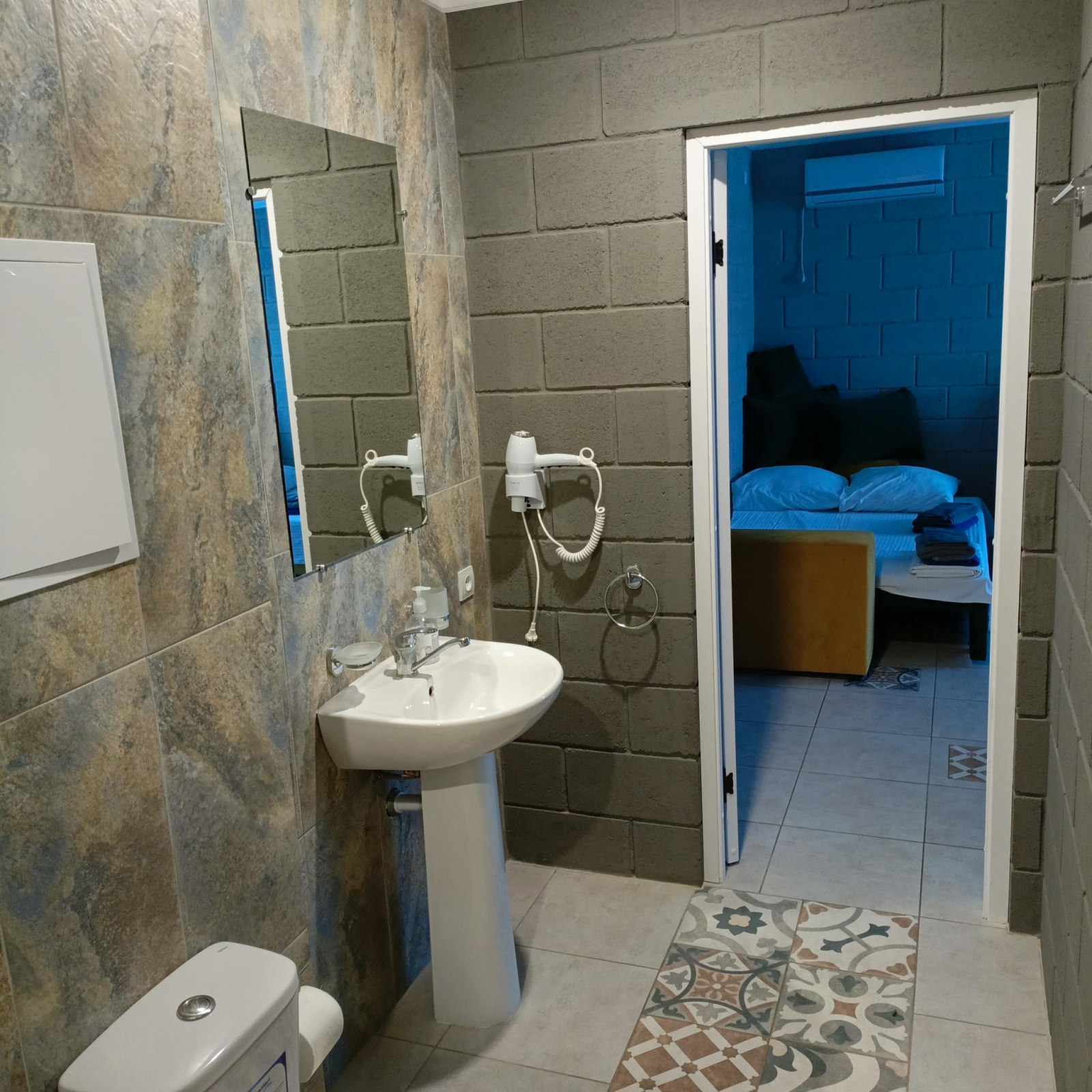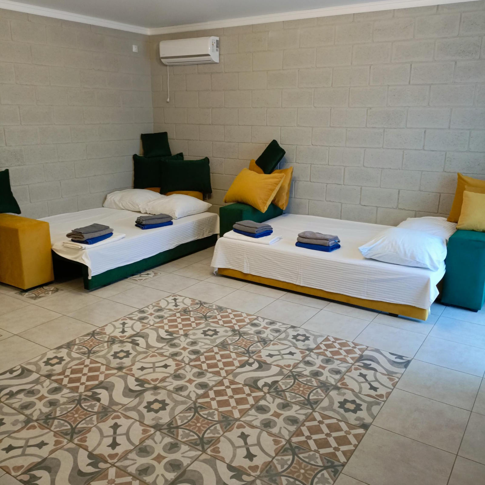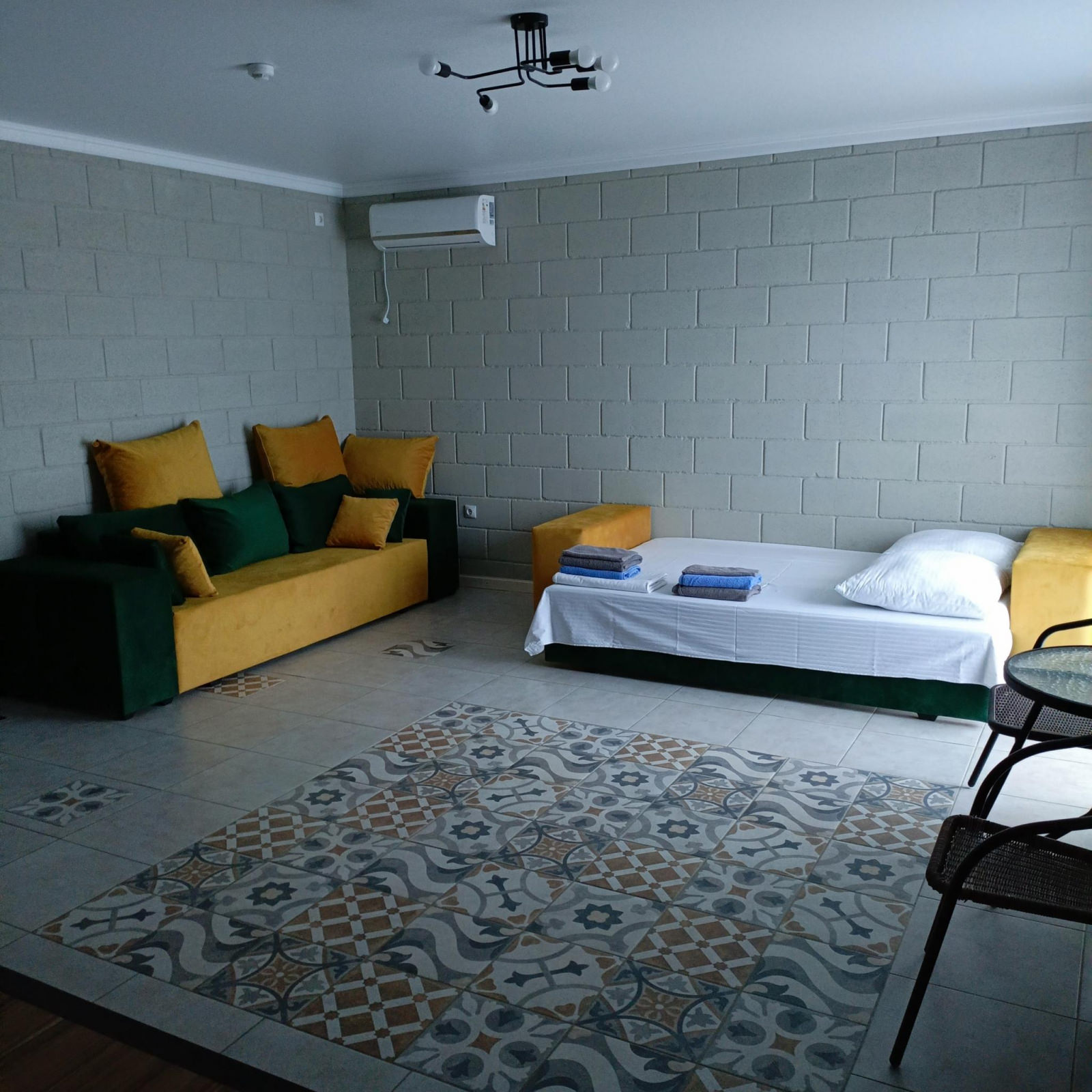 Двухкомнатный номер с прямым видом на море. Максимальное размещение 6 человек. В номере: двуспальная кровать в одной комнате и 2 диван-кровати в другой комнате, телевизор, кондиционер и балкон в каждой комнате. Также номер оборудован 2 санузлами и холодильником.